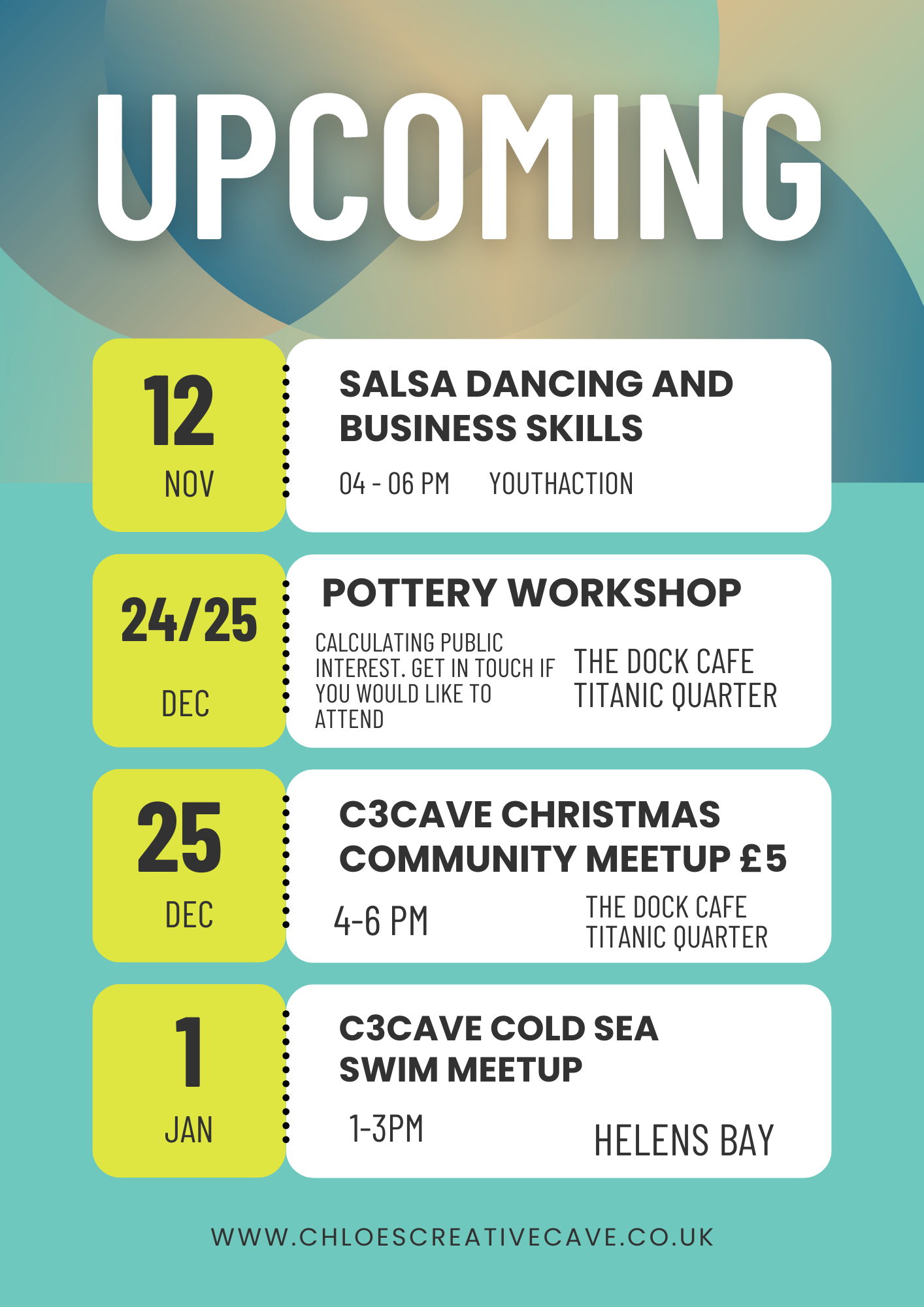 To keep updated with events and changes, or to be involved with our community meetups please join the C3Cave whatsapp group. Click the orange button at the top of the page.